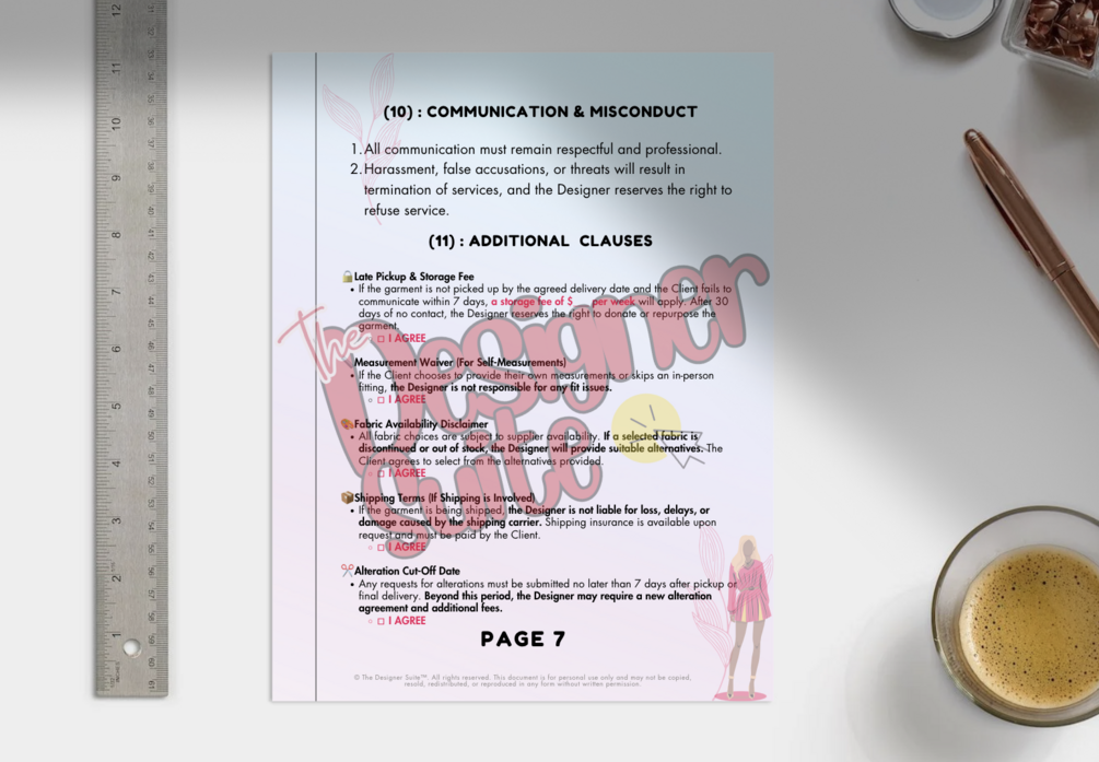 This detailed, lawyer-reviewed contract template is designed specifically for custom prom dressmakers, seamstresses, and solo designers. Whether you're booking high school clients or communicating with parents, this agreement makes sure everyone is on the same page—before the first stitch is sewn.